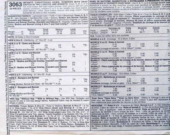 Infants Christening Gown Romper Bonnet Mccalls 3063 Sewing Pattern For Sale Online Ebay